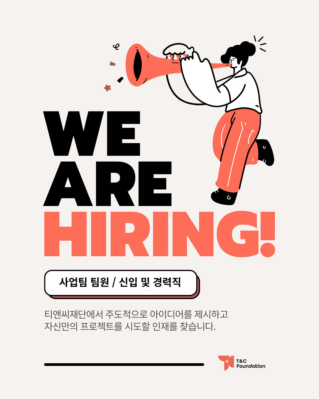 - [공지] 티앤씨재단 사업팀 팀원 채용 (신입/경력)
